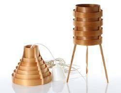 Bordslampa, höjd ca 33 cm inkl skärm n Taklampa, spån, höjd ca 36 cm inkl träfäste, diameter ca 19 cm.