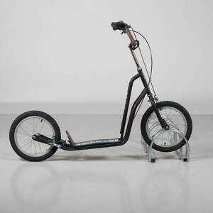 Kickbike, løbecykel i sort. Model: Extreme Spark. Monteret med håndbremser for og bag, støtteben og trædeplade som måler: L. 38 B. 12,5 cm. Selve cyklen Läs mer...