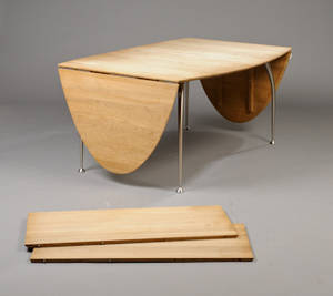 Coco Interiør, dansk håndværk: Spisebord af massiv egetræ, model 702. H. 73 cm. L. 190 cm. B. 100 cm. Bordet er med udtræk, tillægspl. medfølger Läs mer...