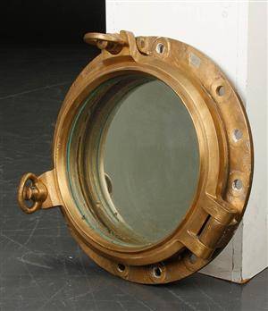 Koøje af malm, isat spejlglas, Ø 45 cm. Medfølgende bolte. Läs mer...