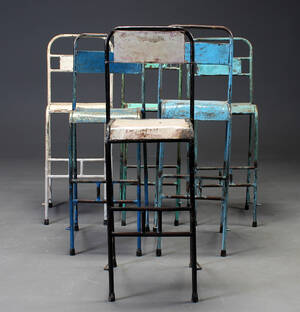 Barstole lavet af rustik bemalede vintage caféstole af jern. Jernstole fra 1960erne, brugt i Indonesien og siden renoverede og forlænget med påsvejsede ekstra stykke på Läs mer...