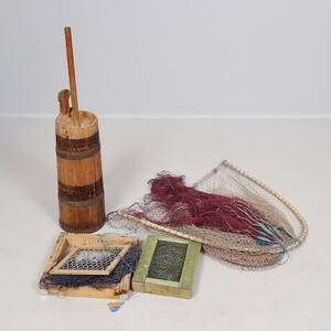 Fiskenät, flöten, fiskespö med låda och drag. Läs mer...