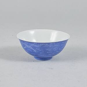 Kina, Blå glasyr med drakmotiv, diameter: 11,5, höjd: 5 cm.