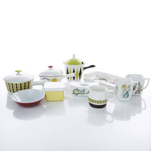 MATSERVISDELAR, 11 st, 1900-talets andra hälft, diverse porslin, bestående av bl at: 1 ´´Verdura´´ kanna, 2 ´´Verdura´´ ungsformar, 1 ´´Dinera´´ kastrul, 1 ´´Granada´´ kanna, 1 Läs mer...