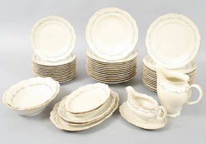 MATSERVIS, ca 53 delar, porslin, Uppsala Ekeby Karlskrona, bestående av 12 tallrikar, 12 djupa, 10 efterrätt, 11 assietter, 4 uppläggningsfat, 2 skålar, 1 kanna, 1 Läs mer...